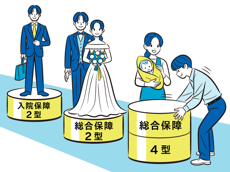 1年定期の保障ですが、解約のお申し出がない限り保障は継続されます。なお、契約の変更や解約は期間中いつでも可能です。ライフステージにあわせて特約を付加して手厚くしたい保障を上乗せするなど、必要な時期にムリなくムダなく保障を備えることができます。